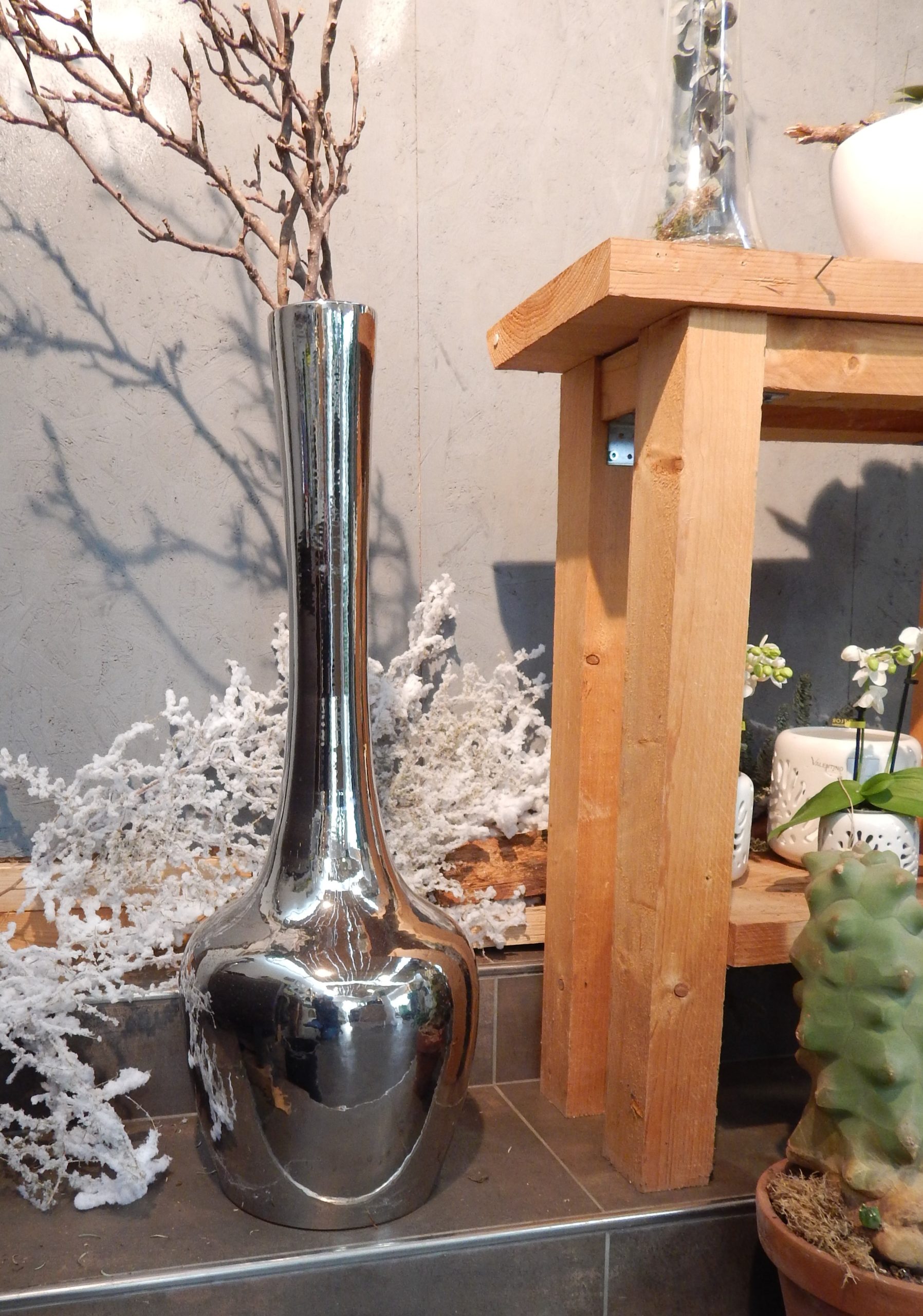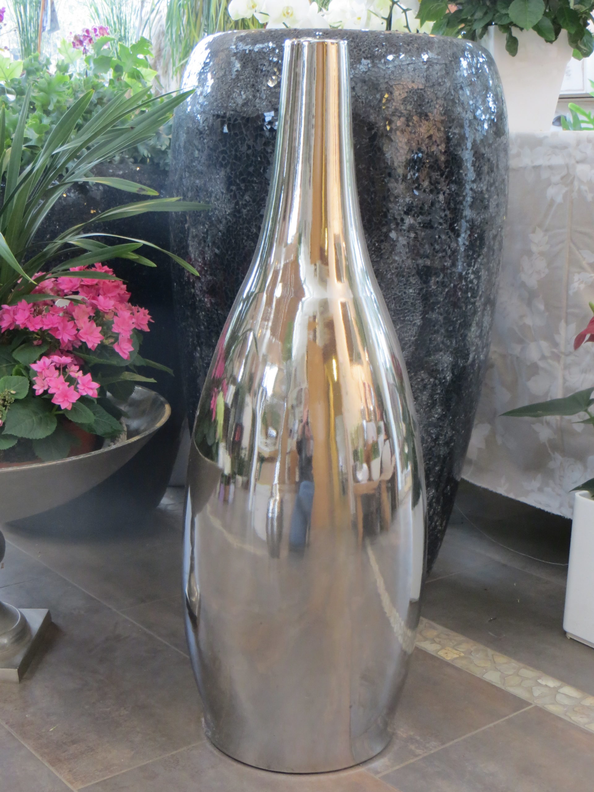 Außergewöhnliche Vase aus Keramik mit einer polierten Chrom-Oberfläche.