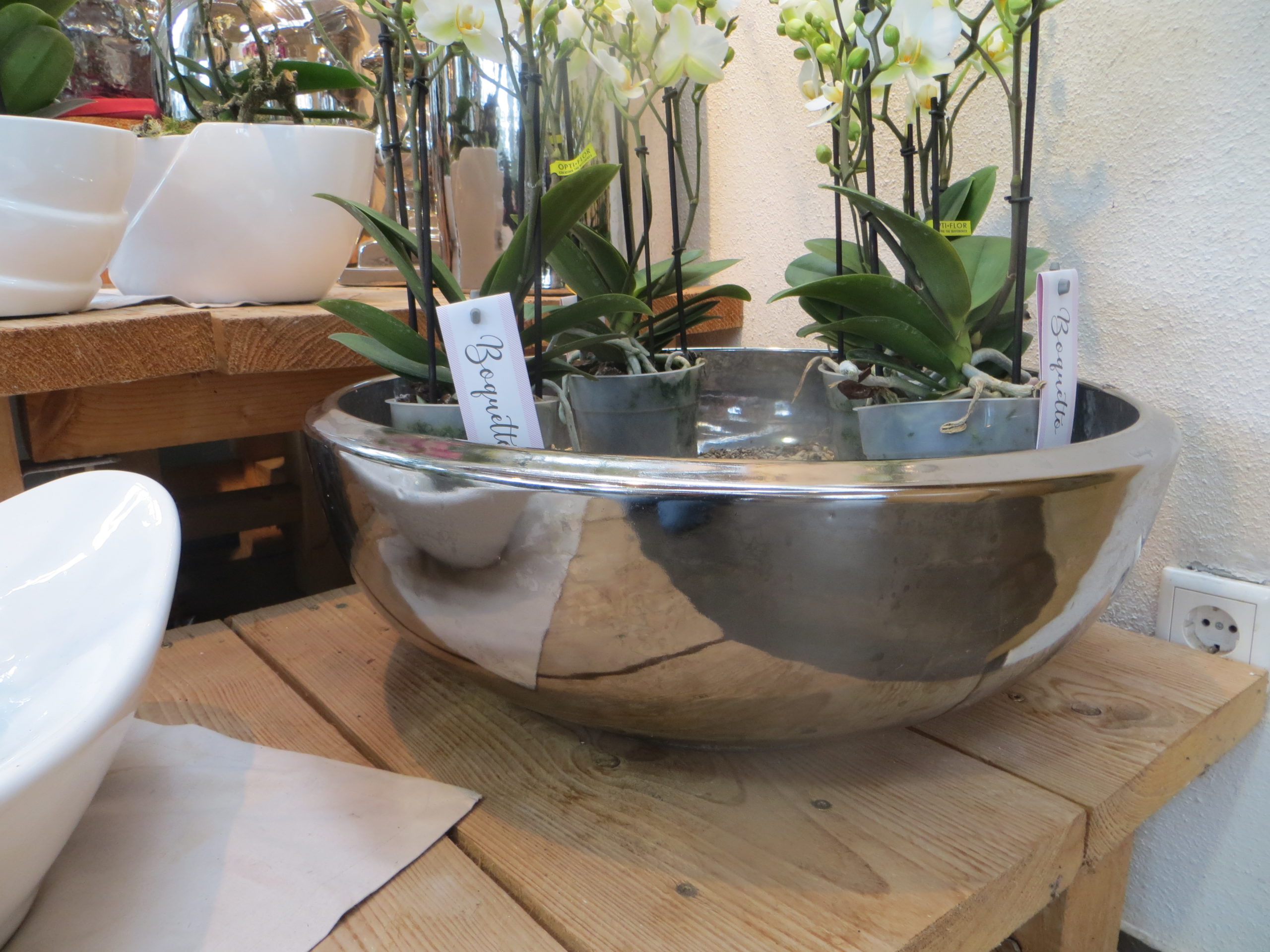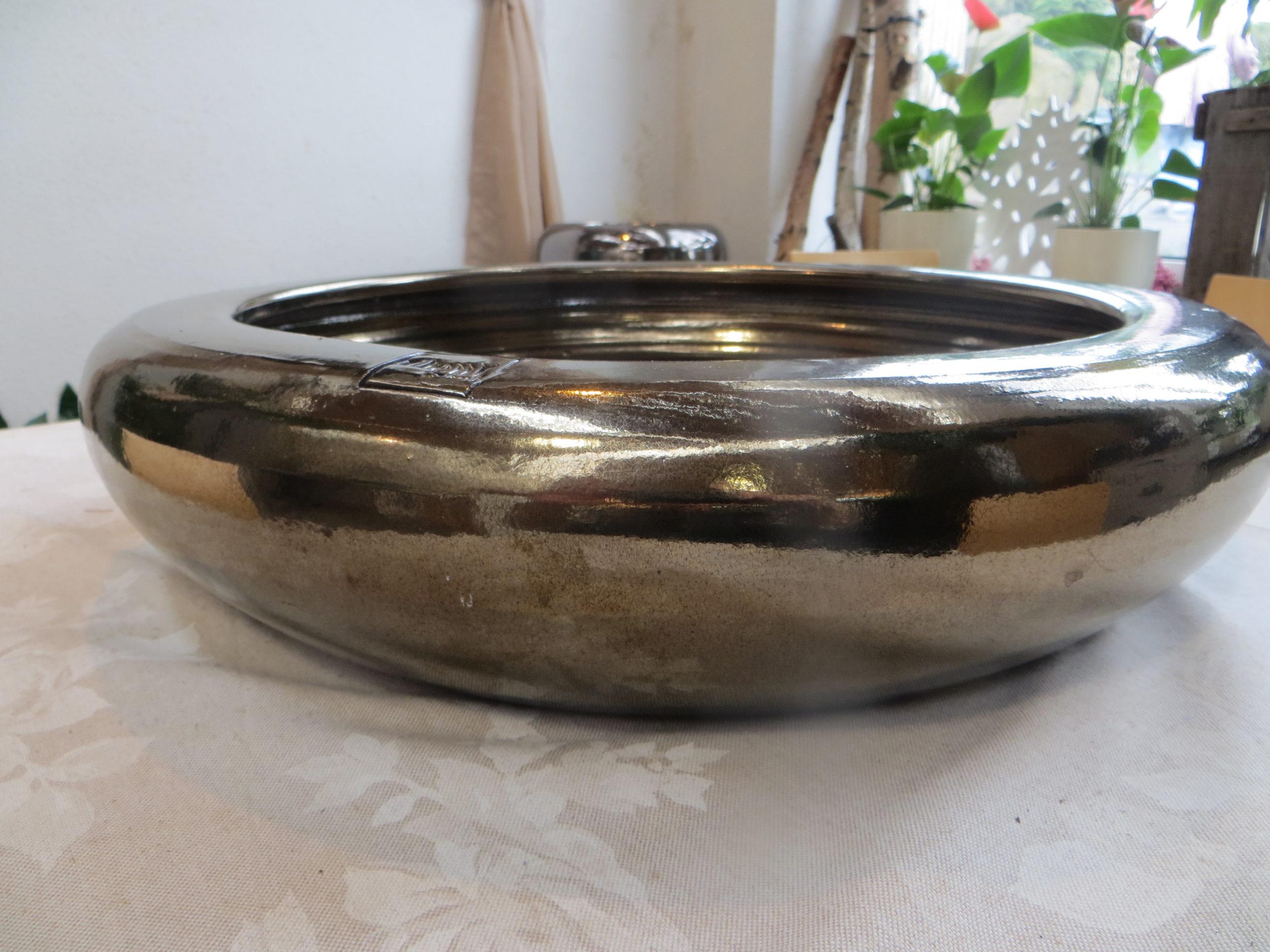 Schale aus Terracotta mit einer Oberfläche im polierten Chromlook.