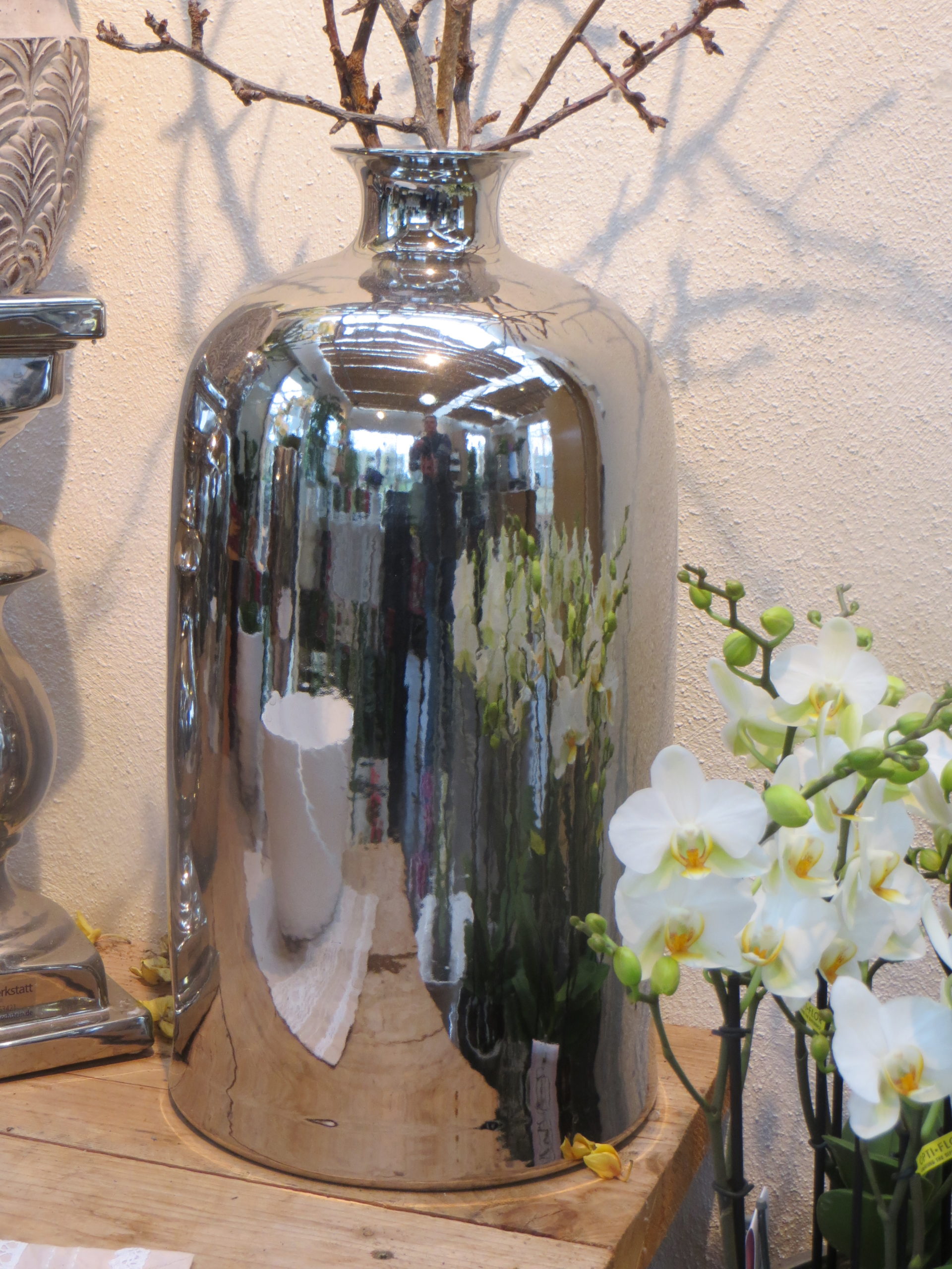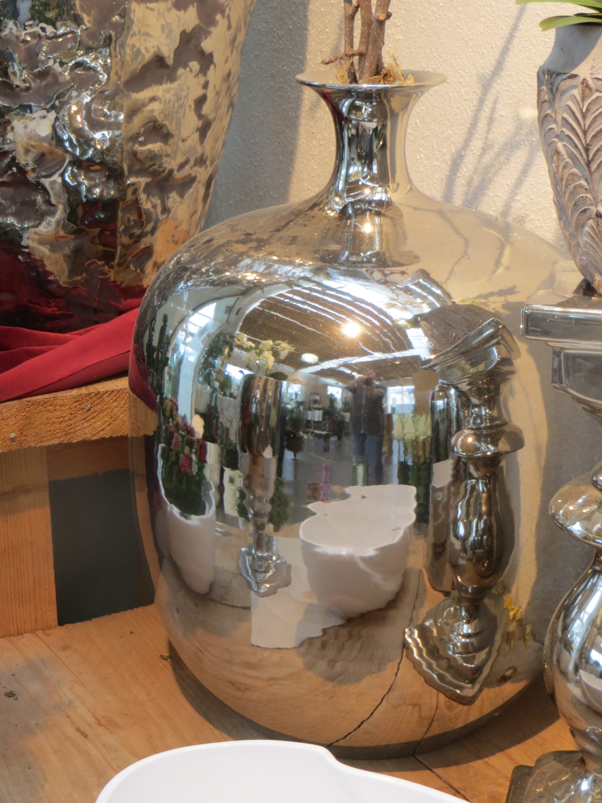 Vase aus Keramik mit einer Oberfläche im polierten Chromlook.